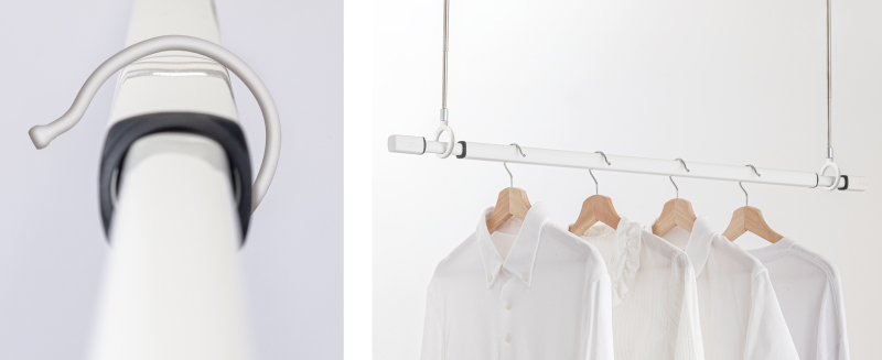 ものほし竿の便利機能\n四角いカタチでハンガーの向きが揃いやすい\n\nものほし竿の四角いカタチによりハンガーが2点で接するため斜めになりにくく、ハンガーの向きが揃いやすくなっています。
