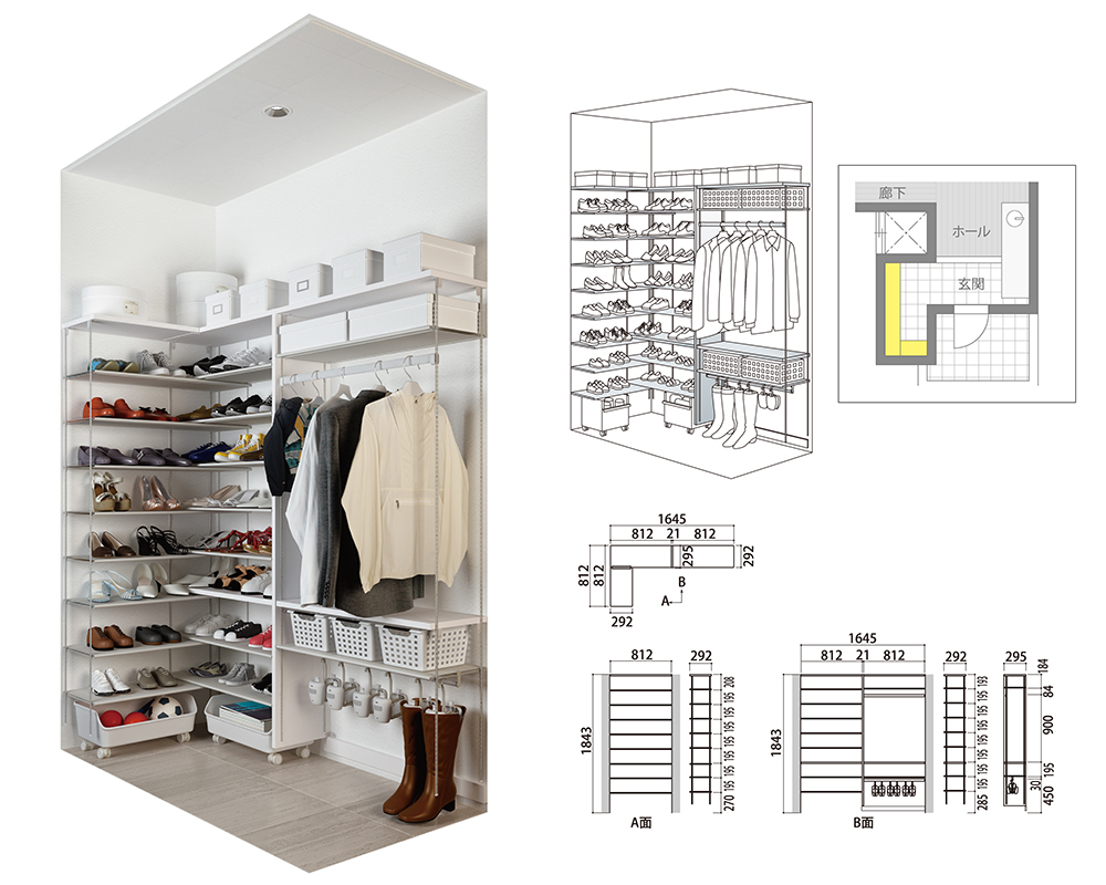 「ずっと ここちいいね」を実現する企業 DAIKEN 建材製品情報 画像 データ検索 jpg G_B_K137900_03.jpg 製品写真 FiTIO(フィティオ) 側面棚柱タイプ\nシューズインクローゼットL型プラン\nプラン1 ファイル種類 製品写真 見出し 製品写真 キャプション FiTIO(フィティオ) 側面棚柱タイプシューズインクローゼットL型プランプラン1