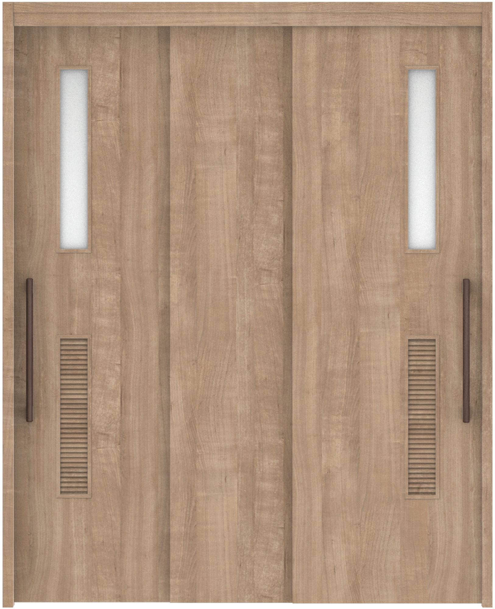 | キャプション | おもいやりドア(施設向け) 3枚連動吊戸 FAデザイン 〈ダルブラウン〉 |