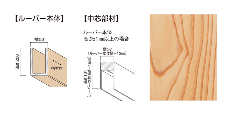 | キャプション | MFUS-0111-0520 グラビオルーバーUS 本体+中芯部材(幅×高さ×長さ:50㎜×200㎜×2420㎜)〈US11(スギ)〉 |