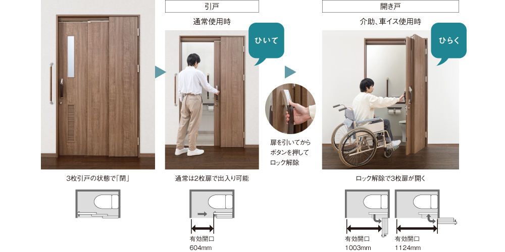 | キャプション | 引戸と開き戸をあわせた独自の開閉パターン |