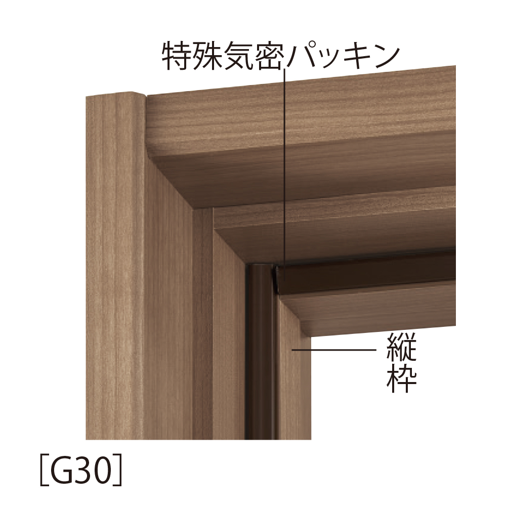 | キャプション | ①ドアからの音漏れを抑える遮音機構 ●特殊気密パッキン 特殊気密パッキンが扉と密着することで、ドアの気密性を確保します。 |