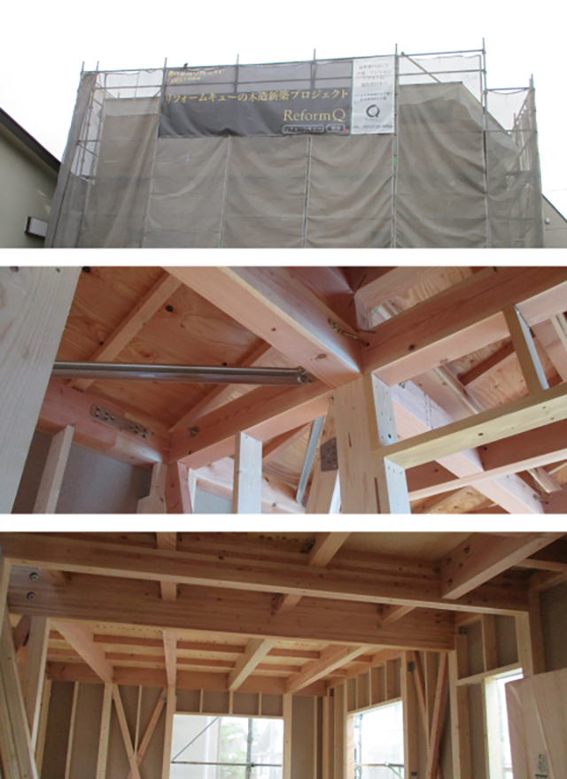 リフォームキューの木造新築プロジェクト進行中!新築の耐震軸組みです、リフォームの現場にもこの技術が生かされます。