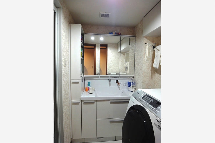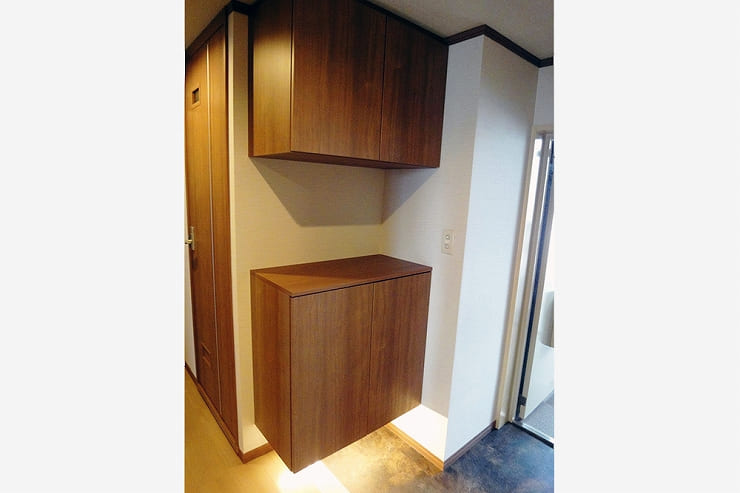 - 間仕切り壁や建具位置を変更することで、広さと収納スペースを確保出来ることをご提案。また、「色」の効果を利用し、狭く感じる空間も広く見せることが出来ます。特に玄関まわりや収納部分は、とても使いやすくなったと喜んでいただけました。