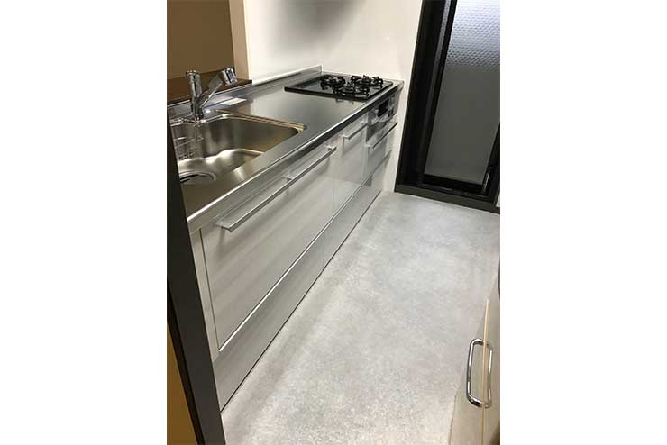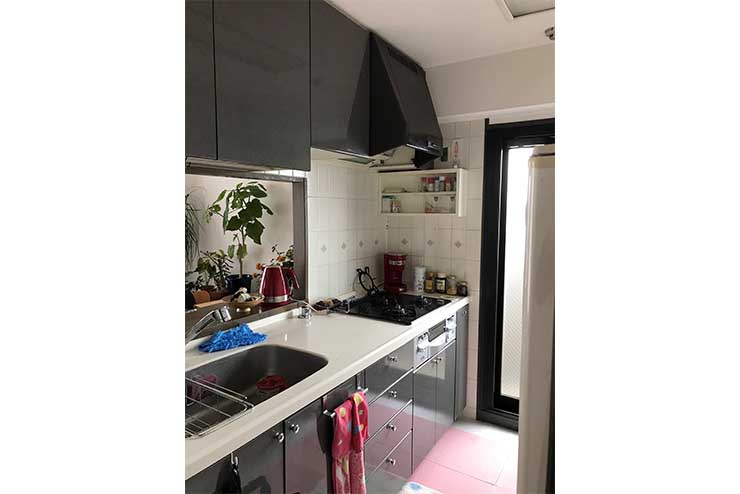 - 古くなった、キッチン廻り、洋室、廊下の床の張替えをご希望でした。またキッチン前には、マグネットタイプの壁にしたいとのことでした。お施主様は、お友達を呼んでホームパーティをされる事も多く、キッチンに立たれる時間が多く、使い勝手の良さも重視されていましたので、キッチンやカップボードの仕様については特に細かい部分まで、お打合せをして決めていきました。又、キッチンからリビングダイニングへの視界を広げるために、キッチン前の開口のコーナー部分を一部をカットする方法で、提案いたしました。壁クロスに関しても、ダイニング側の開口部と開口部を通して見えるカップボード側の壁のクロスのコントラストを考えながら、お施主様と一緒に決めていきました。