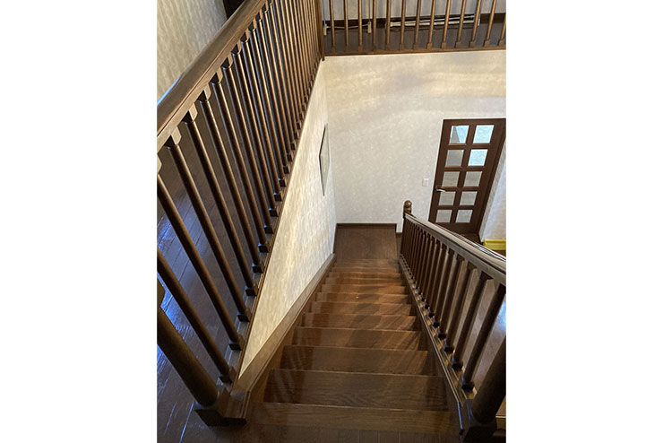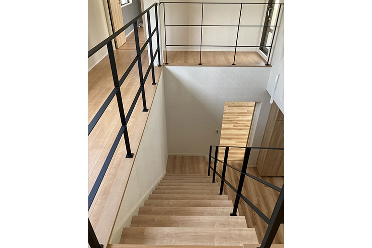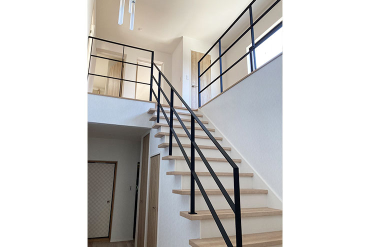 - ダーク系の内装から、ナチュラル系に改修するにあたって、階段の架け替えをするかを悩みました。イメージされていたアイアンの手摺を提案したところ、思い切って階段全てを改修する運びとなりました。