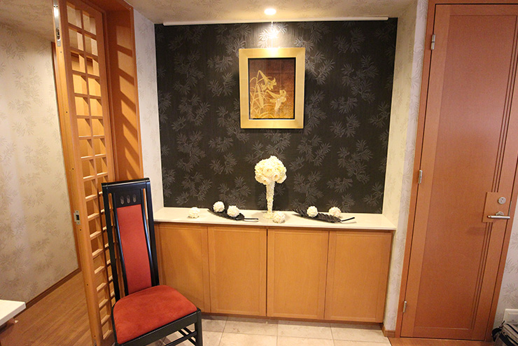 - クロスの張り替え打ち合わせ時に、各ホテルの内装写真にてイメージの聞き取りをし、布・紙クロスを中心にプランいたしました。何種類か候補をご提案し、その中から最終的にご自身で決定されました。床絨毯の張替えについては、猫を飼われており、滑りにくさや手入れのしやすさなどからワンラブフロアをご提案しました。扉の色とのマッチングも良かった事より採用となりました。