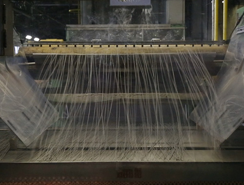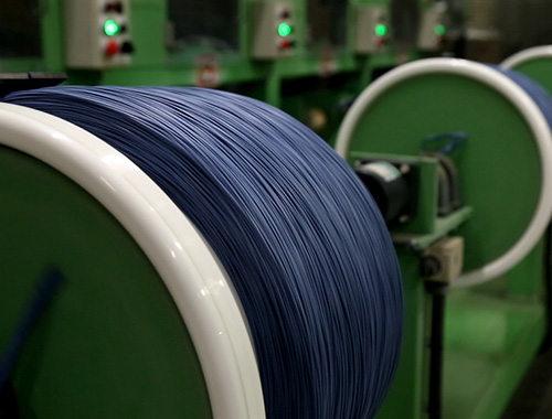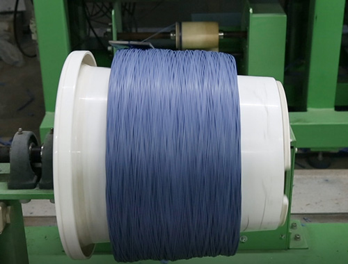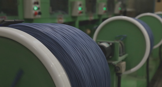 撚糸(ねんし)の表面に樹脂を含浸し、乾燥・硬化させます。
