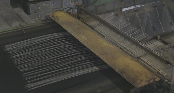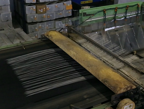 樹脂加工された撚糸(ねんし)を決められた長さにカットします。