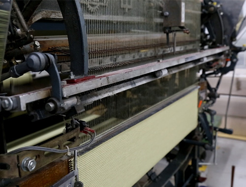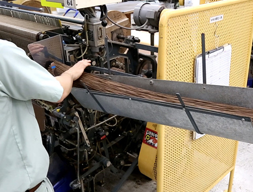畳おもて専用の織り機でしっかりと製織します。