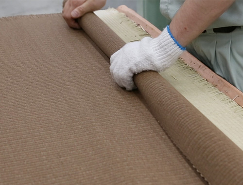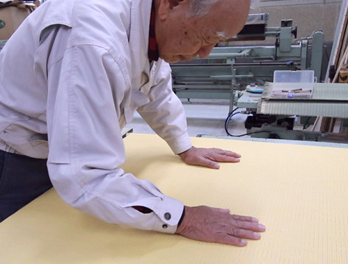 織り上がった畳おもては、おもいやりをもって人の目で一つ一つ丁寧に検査されます。