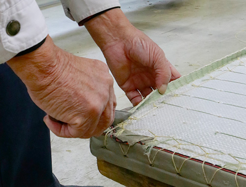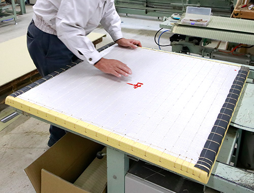 DAIKEN岡山工場・その他関連工場で織りあげた畳おもては、一枚一枚畳職人の手によって畳へと仕上げられていきます。