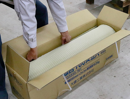 和紙おもて(ダイケン健やかおもて) を取り出し、畳床のサイズに合わせてカットしていきます。
