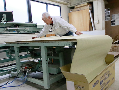 原料となる機械すき和紙は乾燥に敏感!DAIKENの岡山工場では、原料の保管室の湿度管理を常時行うなど、品質管理を徹底しています。