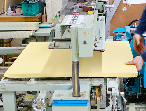 平刺しと呼ばれる縁付け作業と角綴じ作業を行います。
